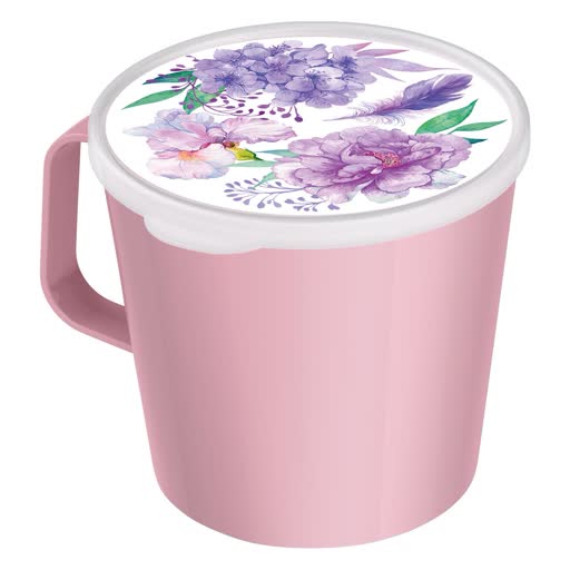 Контейнер-кружка 750мл с декором ЦВЕТЫ (светло-розовый)