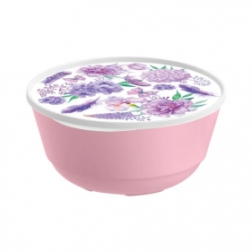 Миска 2л с крышкой с декором ЦВЕТЫ (светло-розовый)
