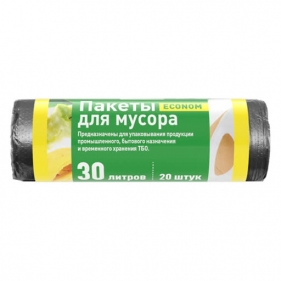Мешки для мусора 30л, 20шт, в рулоне, ПНД Эконом, черные, БЕЗ ТМ