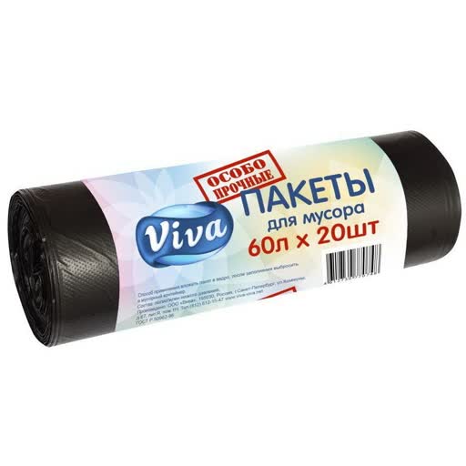 Мешки для мусора 60л.*20шт. ПНД ОСОБО ПРОЧНЫЕ 15 мкм в рулоне (размер 58х70)