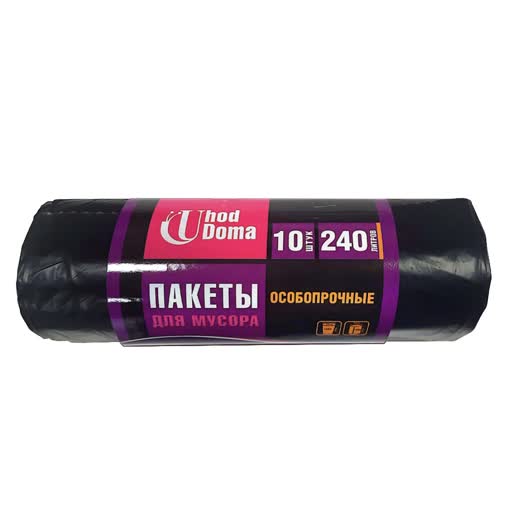 Пакеты для мусора "UhodDoma" особопрочные, 240 л (ПВД), 10 шт,28 мкм.
