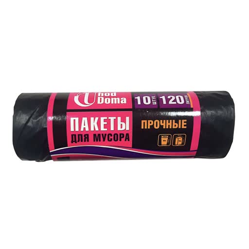 Пакеты для мусора "UhodDoma" прочные, 120 л (ПВД),10 шт, 25 мкм.