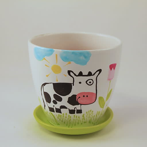 Горшок цветочный керамический с поддоном Корова 1.4 л